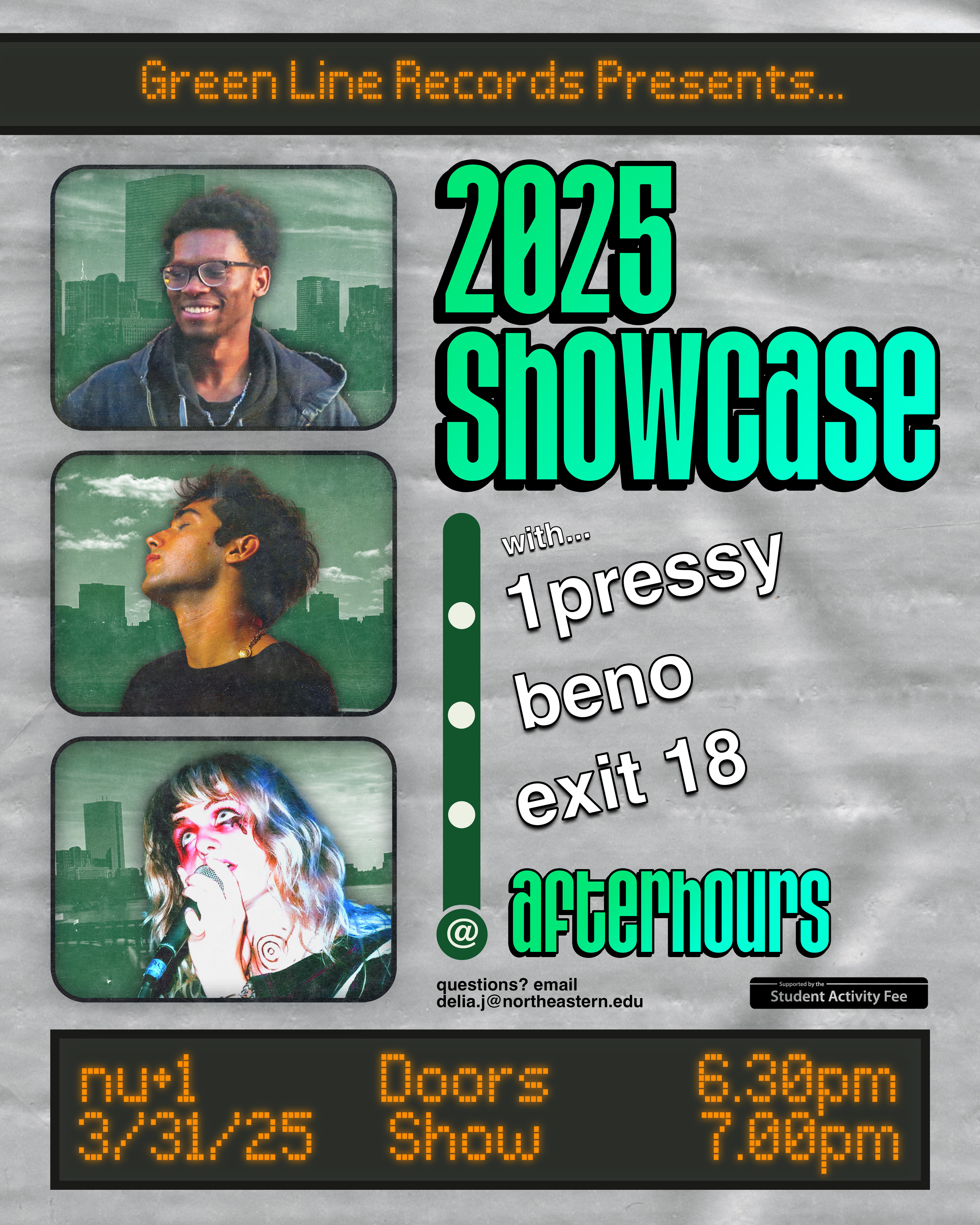 Green Line Records is Northeastern University's student-driven record label supporting signed artists from the local Boston area with recording, creative services, A&R, licensing, and performance opportunities. As their Co-Head of Creative Services, I elevated our brand with 20+ pieces of social media collateral to gather 300k+ Instagram impressions during my term, designed 4 posters for concerts, led weekly meetings to over 40+ members of my department, serve as Editor-in-Chief of our semesterly digital and physical magazine, and spearhead the overall visual direction of the organization.